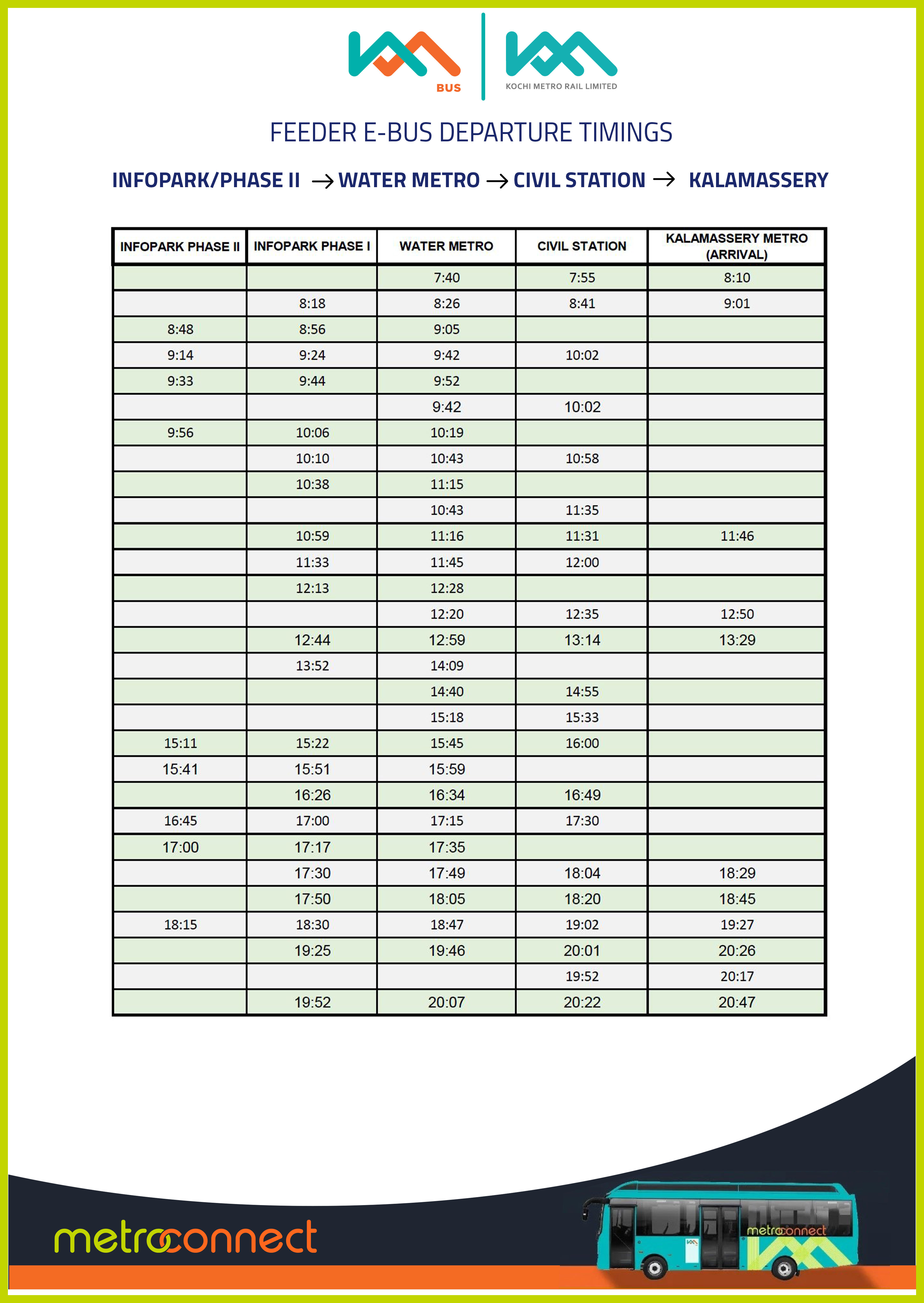 Timings – Feeder Bus -INFO KMLT DWN – Kochi Metro Rail Ltd.