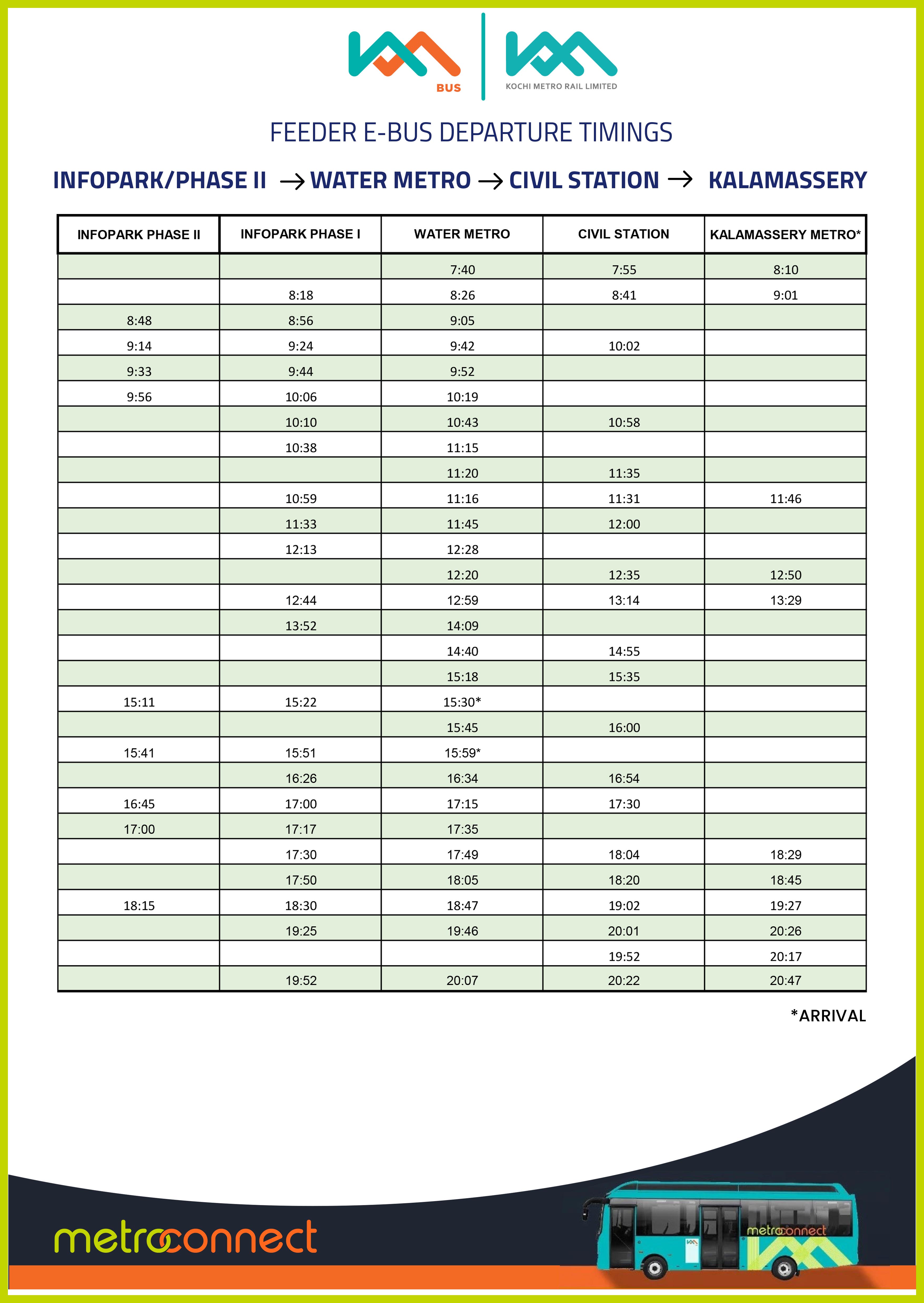 Timings – Feeder Bus -INFO KMLT – Kochi Metro Rail Ltd.