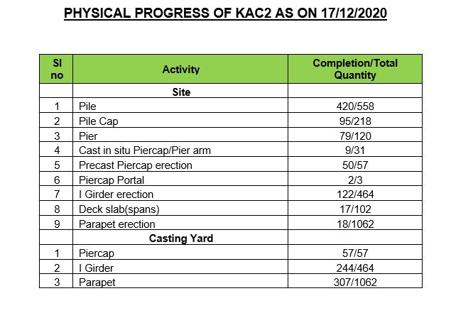 Physical Progress-17-12-2020 – Kochi Metro Rail Ltd.