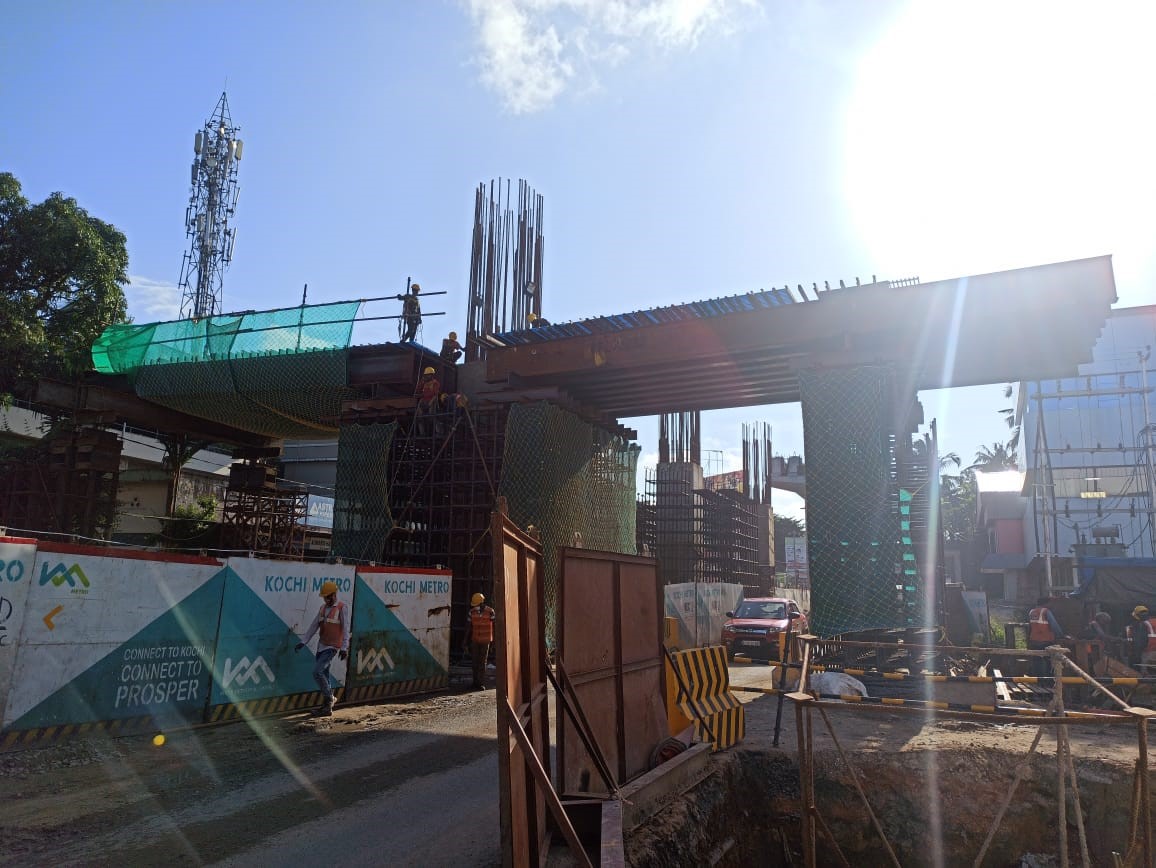SN Junction Pier Arm work i nprogress-01.10.2020 – Kochi Metro Rail Ltd.